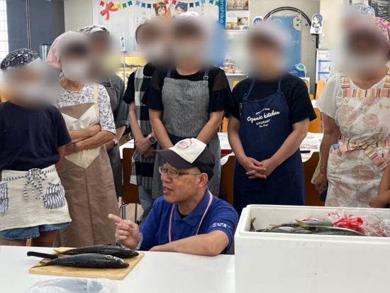 1 回目は魚1 尾を使い、捌き方の基本から3 品に仕上げる体験を。